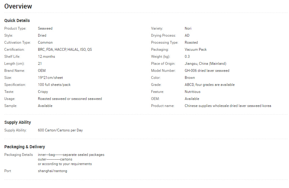 Dried Porphyra haitanensis